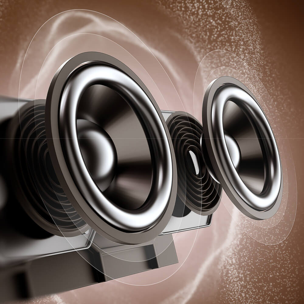 Du kan också ansluta trådade hörlurar via en 3,5 mm ljudutgång, eller ansluta externa högtalare eller en dator via en 3,5 mm ljudkabel.